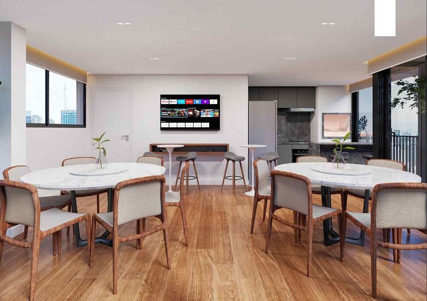No topo, um rooftop espetacular oferece um cenário perfeito para relaxar e socializar, com piscina, espaço gourmet e academia completando o pacote de lazer. A lavanderia, pensada para conveniência dos moradores, completa a lista de facilidades, proporcionando um estilo de vida moderno e funcional. O Edifício Alexandrino é mais que um espaço residencial; é um exemplo de arquitetura que promove o bem-estar em todos os detalhes, transformando cada ambiente em um refúgio urbano de qualidade e conforto.