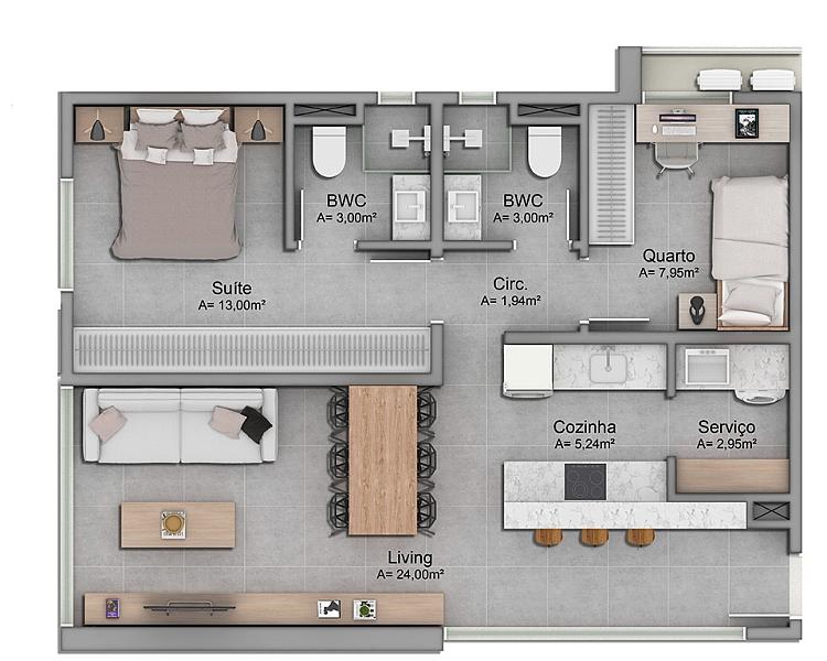 Localizado em um prédio com infraestrutura completa, este apartamento proporciona segurança, lazer e bem-estar para toda a família. Um lugar onde cada detalhe foi projetado para você viver momentos inesquecíveis.