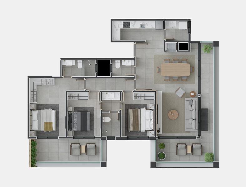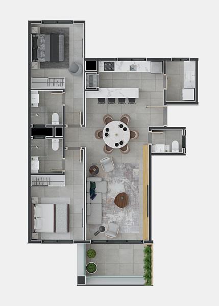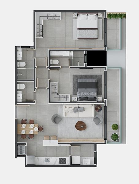 2 dormitórios (2 suítes)