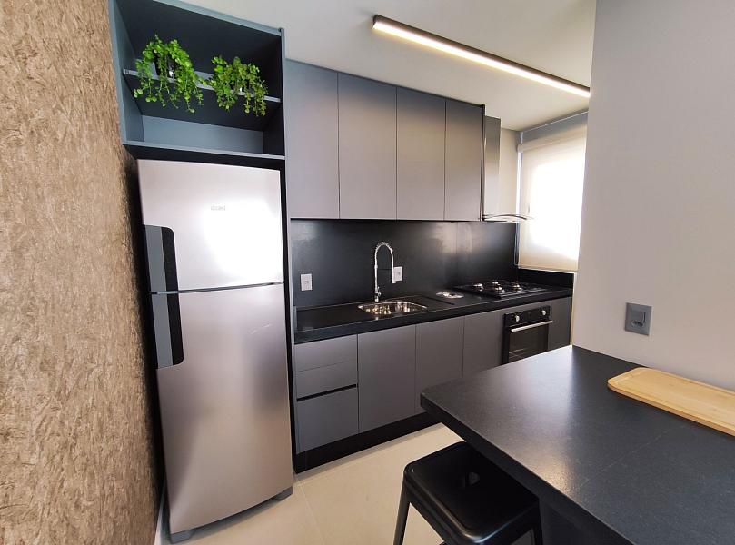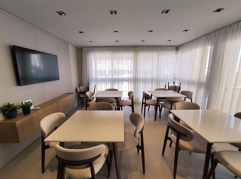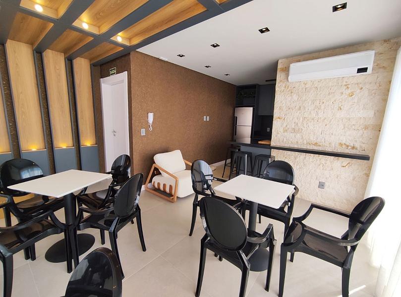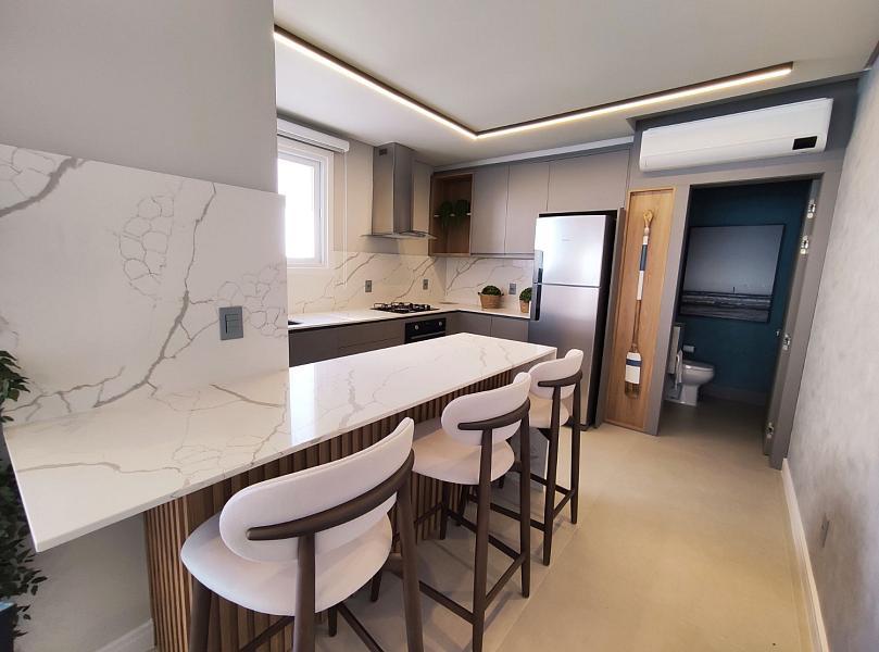 O apartamento conta com 2 dormitórios sendo 2 suítes, living dois ambientes, cozinha americana, lavabo, área de serviço, churrasqueira, sacada e 1 vaga de garagem.