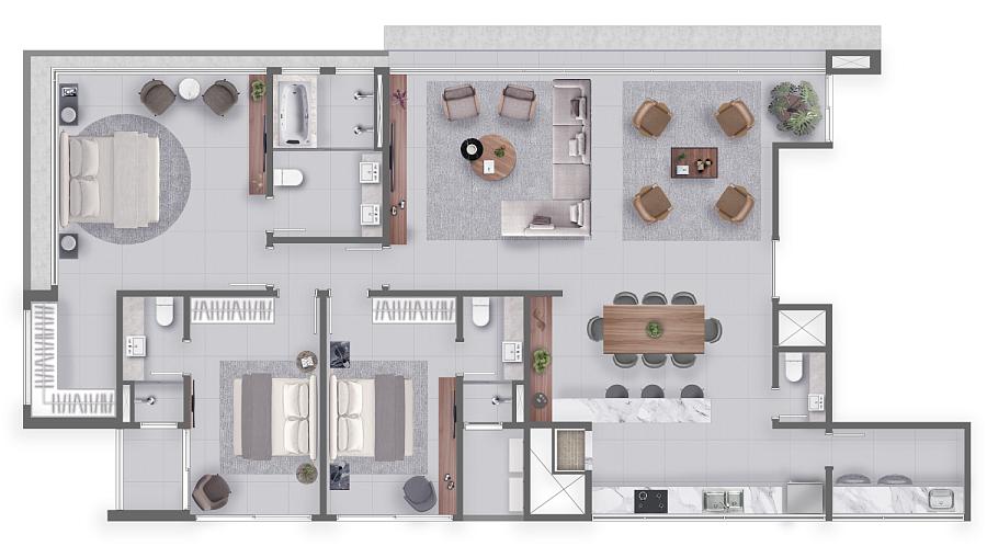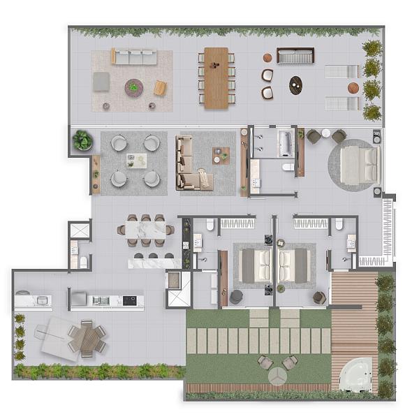 Um projeto onde cada apartamento possui seu próprio pavimento, buscando exclusividade e privacidade.