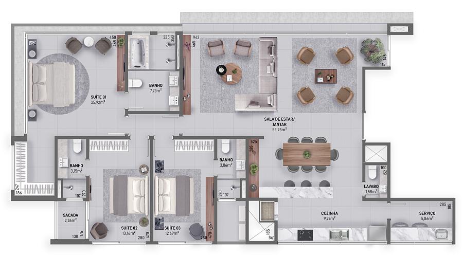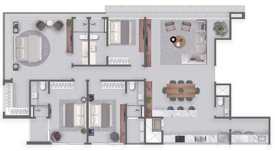 Um projeto onde cada apartamento possui seu próprio pavimento, buscando exclusividade e privacidade.
