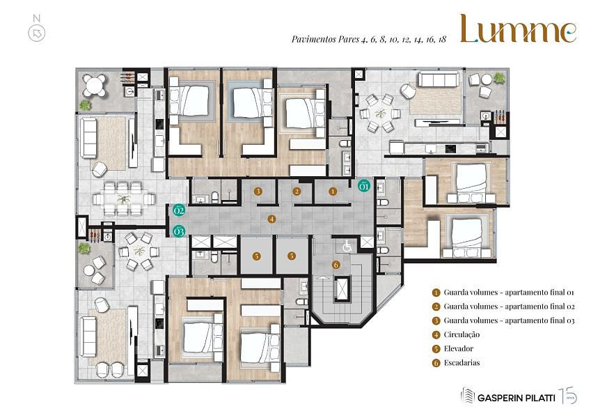 Um dos diferenciais do Lumme será a cobertura rooftop, que proporciona novos ângulos para apreciar Torres, sendo um espaço ideal para relaxamento e convívio social, com piscina de borda infinita, salão de festas, lounge externo com lareira de chão, espaço kids e espaço fitness.