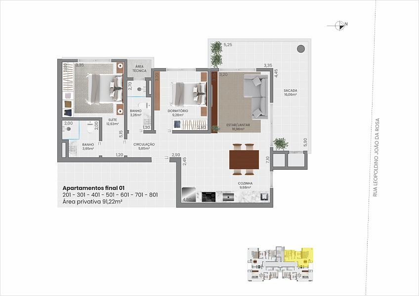 Ótimo apartamento na planta, o imóvel contem 02 dormitórios (sendo 01 deles suíte) 01 banheiro social, ambientes de estar jantar e cozinha integrados, sacada ampla com churrasqueira.