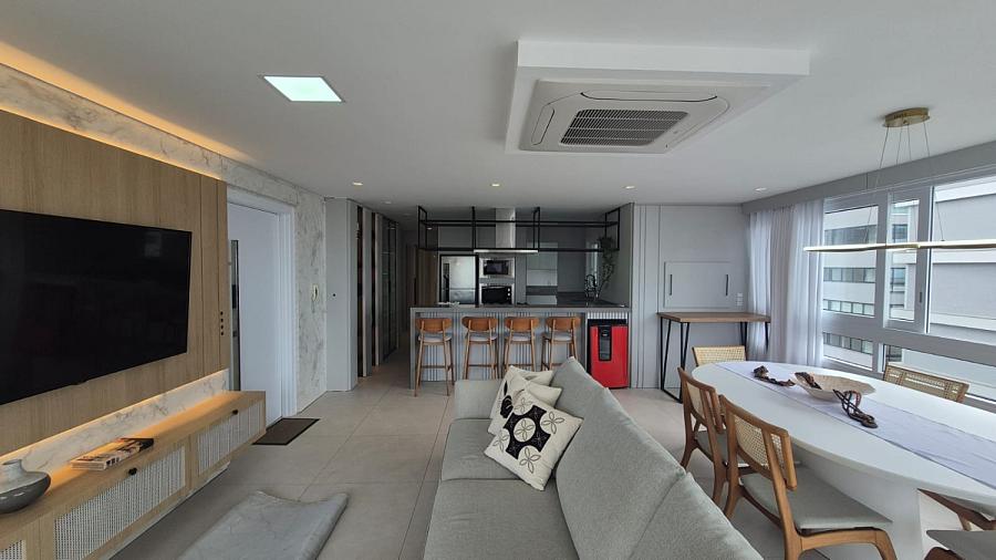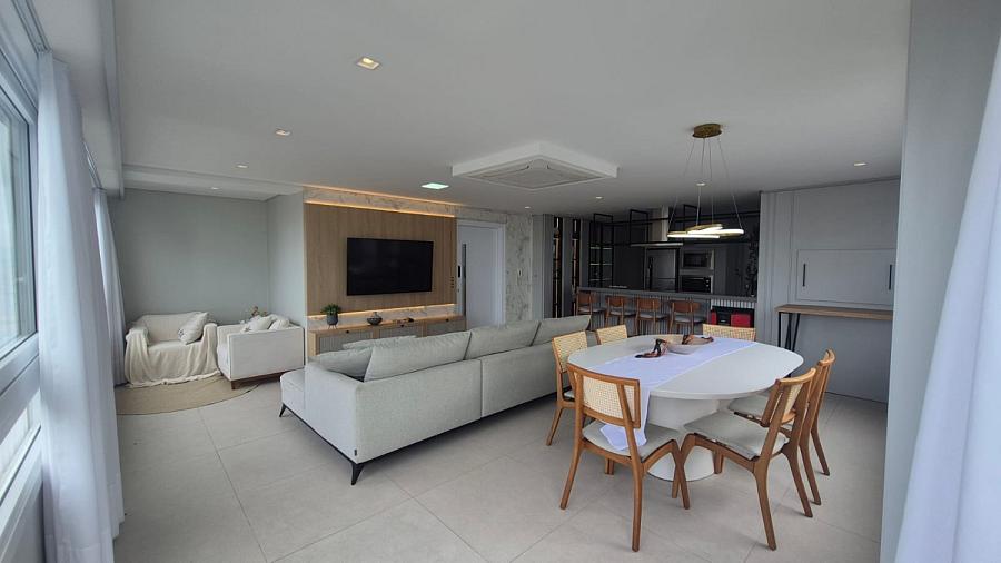Imagine acordar e deixar a brisa do mar entrar pelas janelas do seu novo lar. A poucos passos da praia, neste apartamento no bairro Predial, o som das ondas se mistura à tranquilidade de um amplo living com vista para o mar. O espaço integra sala de estar, jantar e cozinha, criando um ambiente perfeito para compartilhar momentos com quem você ama.