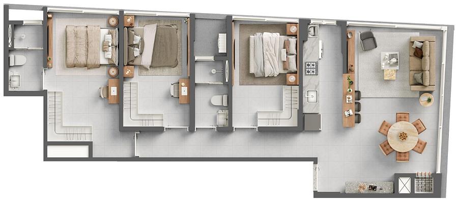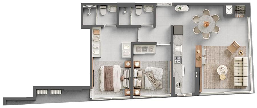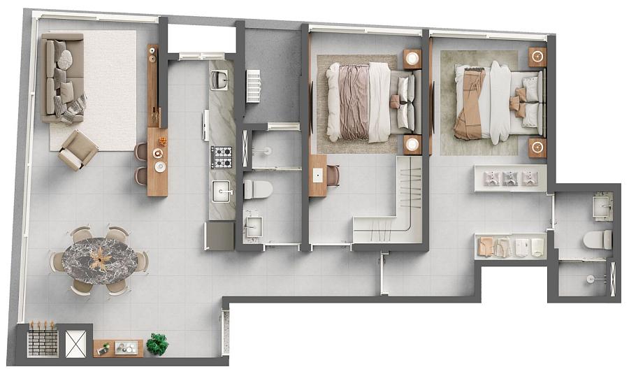 2 dormitórios (1 suíte)