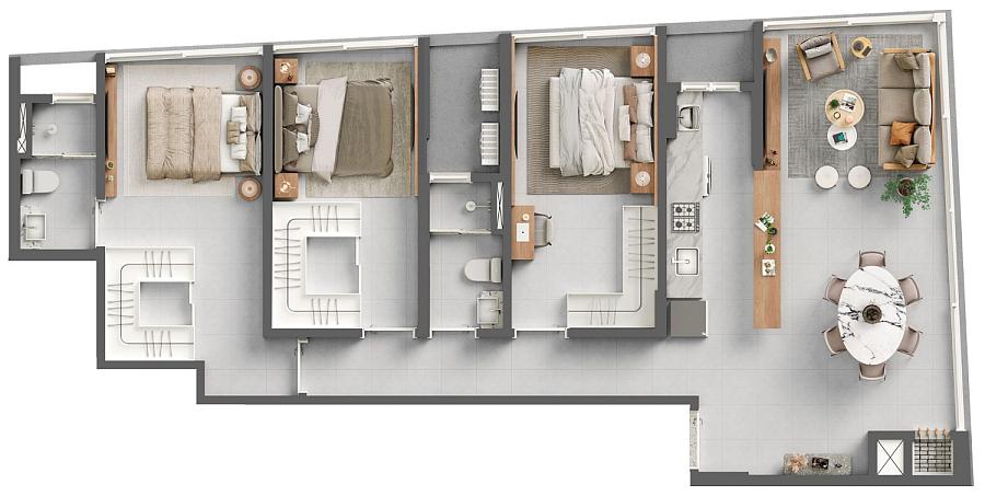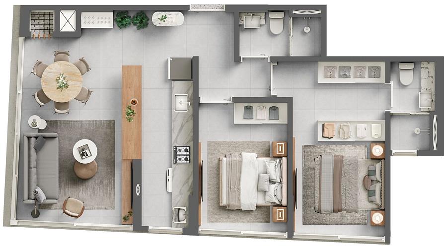 2 dormitórios (1 suíte)