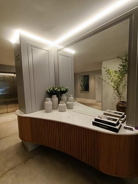 O projeto apresenta traços arquitetônicos modernos valorizando os detalhes, dentre eles o hall principal e a fachada com acabamento em vidro, proporcionando um conjunto sem igual.