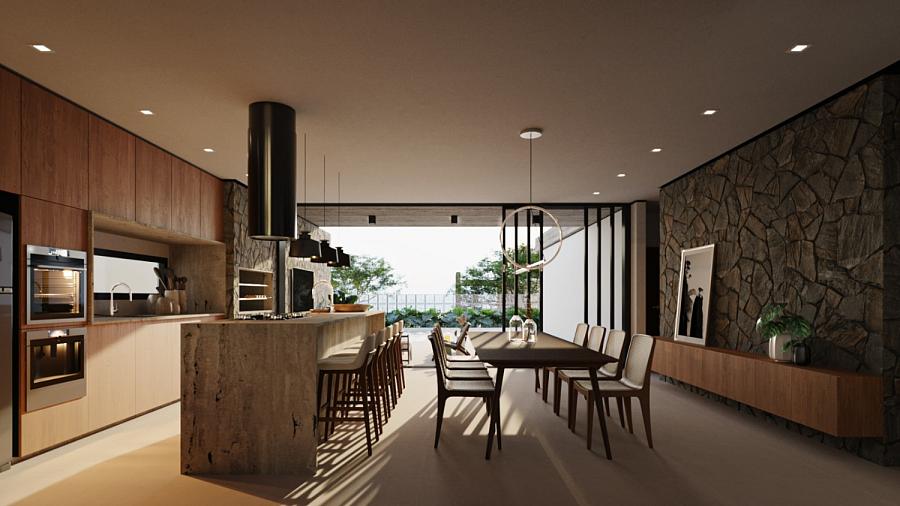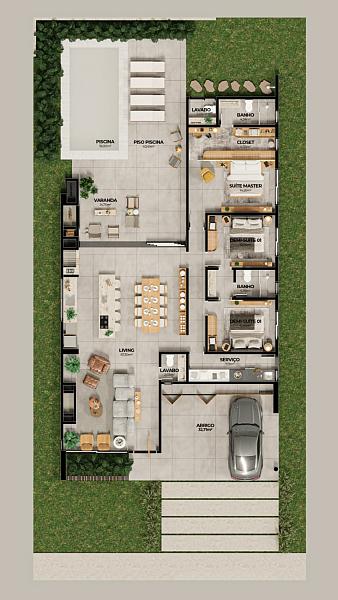 A casa se revela como um santuário de tranquilidade, com seus 3 dormitórios, sendo uma suíte e duas demi-suítes, proporcionando o máximo de privacidade e conforto para seus moradores. Dois lavabos são discretamente posicionados para atender às necessidades dos convidados, enquanto a área de serviço se torna o bastião da praticidade. Mas é na integração perfeita entre estar e jantar, complementada por uma lareira que aquece não só o ambiente, mas também os corações, que a verdadeira essência deste lar é revelada. A cozinha, espaço de inspiração e criação culinária, abre-se para uma varanda majestosa, onde o espaço gourmet e a churrasqueira convidam a celebrações memoráveis. E ao fundo, um jardim exuberante se funde com uma piscina reluzente, criando um refúgio de paz e harmonia. Esta casa é mais do que uma simples residência; é uma obra-prima arquitetônica que conta histórias de elegância e bem-estar, onde cada canto é um convite para viver intensamente cada momento.