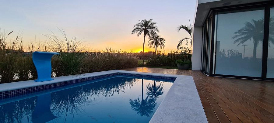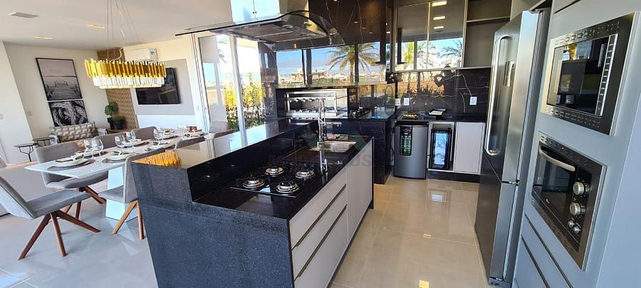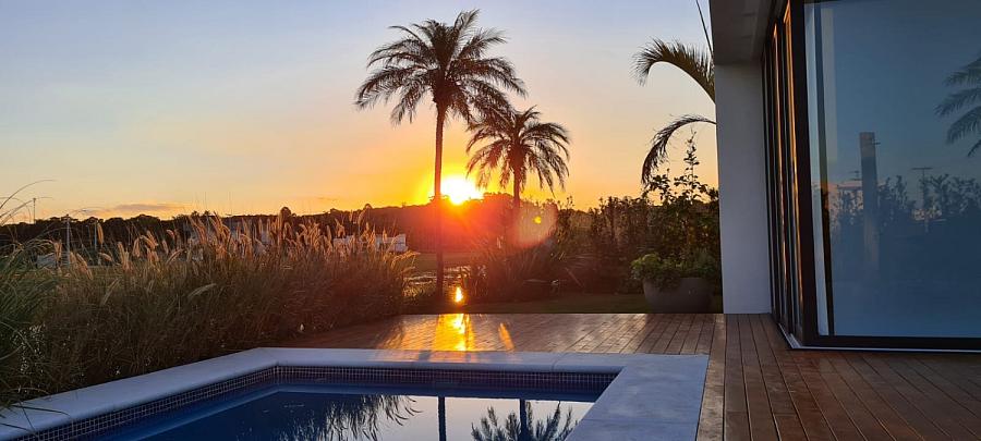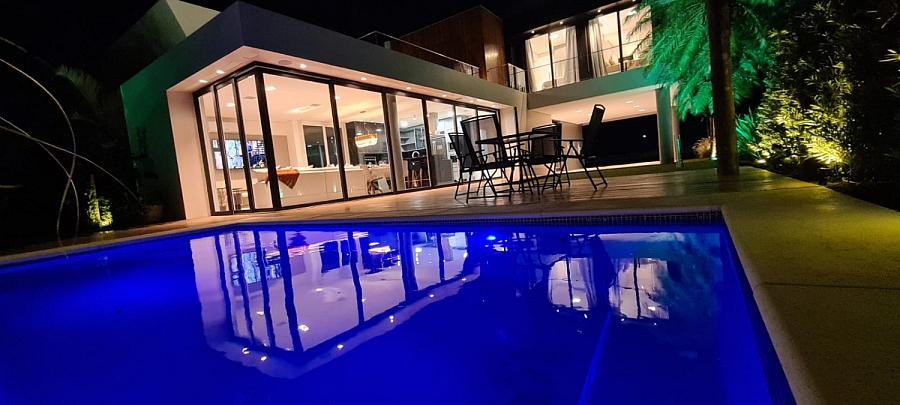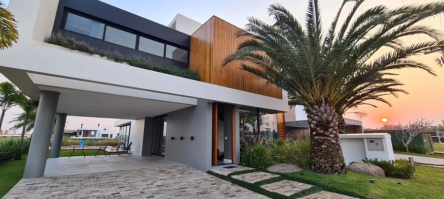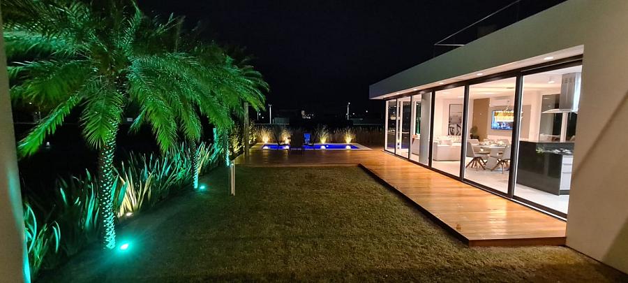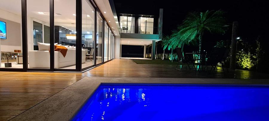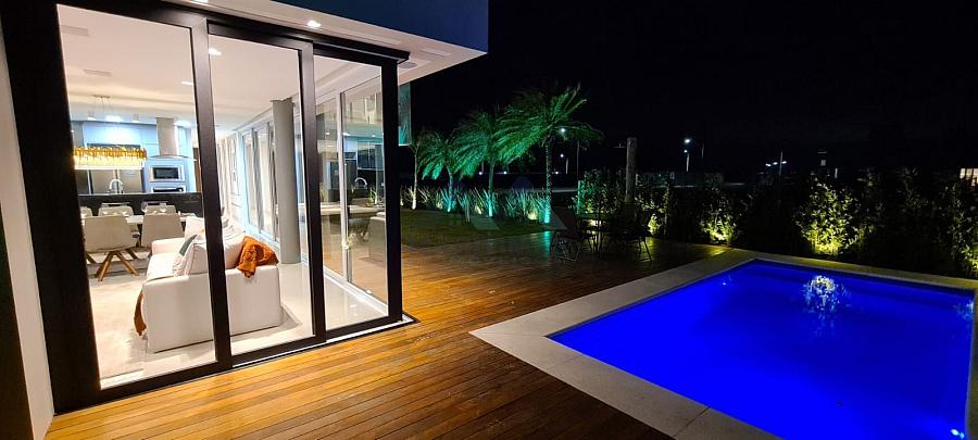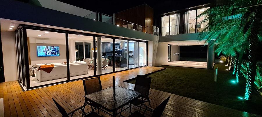 Áreas de lazer integradas, lavanderia ampla, armário externo para bicicletas e utensílios, garagem para 2 carros com espera para carregador de carro elétrico, ar condicionado em todos os cômodos, instalação para água quente/fria, churrasqueira rotativa com bifeteira, piscina com iluminação e aquecimento solar, porcelanatos tamanhos grandes padrão classe A, decks em madeira Grapia, gesso, aberturas grandes do chão ao teto em PVC preto externo e branco interno, paisagismo com irrigação automatizada, automação em toda a casa, aspiração central.