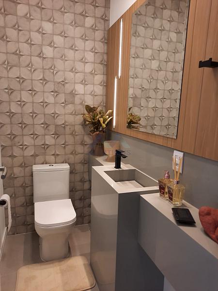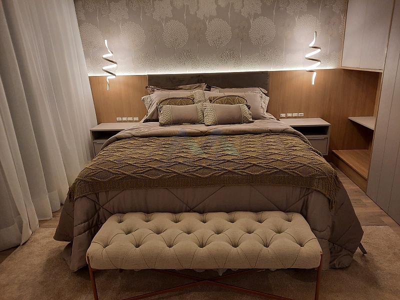 Possui quatro suítes, sendo uma no piso inferior, podendo ser um home office. A suíte máster possui ampla banheira de 2 lugares, closet e ofurô no amplo terraço.
