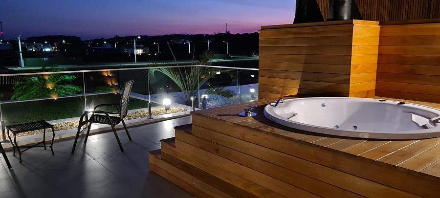 • Suite master com banheiroa para dois lugares e ofurô no amplo terraço