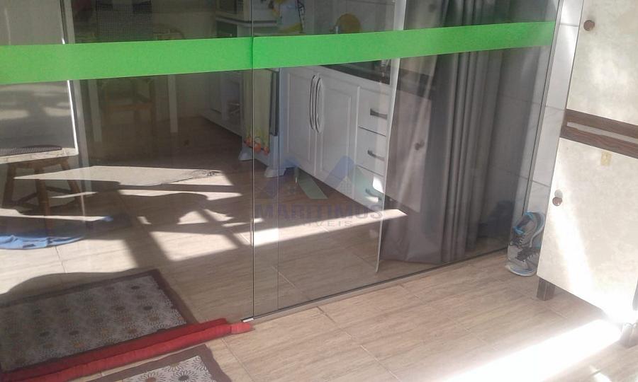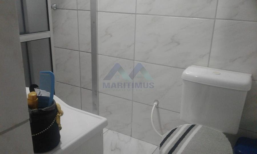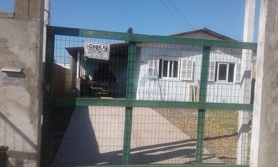 Casa frente mista, com 2 dormitórios, banheiro social, sala de estar e jantar, cozinha, área de serviço com churrasqueira, garagem coberta para 2 veículos e um pátio na parte da frente.