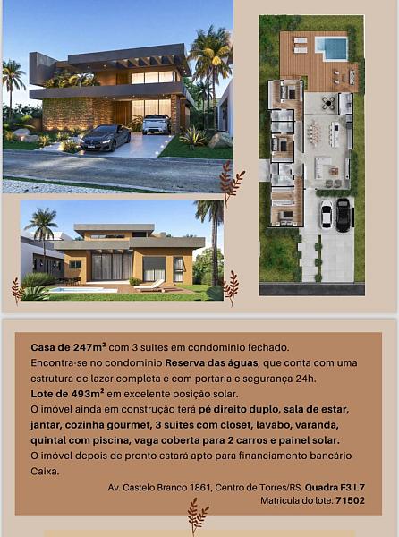 No coração do Condomínio Reserva das Águas, uma casa espera por quem busca conforto, lazer e privacidade. Com três dormitórios, ela é o refúgio perfeito para a família. Mas o que realmente a torna única é o conjunto de experiências que ela oferece: uma academia bem equipada para manter o corpo ativo, uma piscina cristalina para os dias de calor, e uma churrasqueira que promete encontros saborosos com amigos e familiares. O espaço gourmet, perfeito para jantares especiais, e a área de lazer, com playground para as crianças, completam o cenário. Cada canto desse lar foi pensado para criar momentos inesquecíveis. No Reserva das Águas, a qualidade de vida está ao alcance de todos, e a casa se torna um portal para viver o melhor da cidade. A sensação de estar em um lugar exclusivo, onde os detalhes fazem a diferença, é clara. As tardes ao lado da piscina, as risadas no playground, e os jantares ao ar livre fazem dessa casa um lugar onde a tranquilidade e a diversão se encontram, criando memórias para toda a vida.