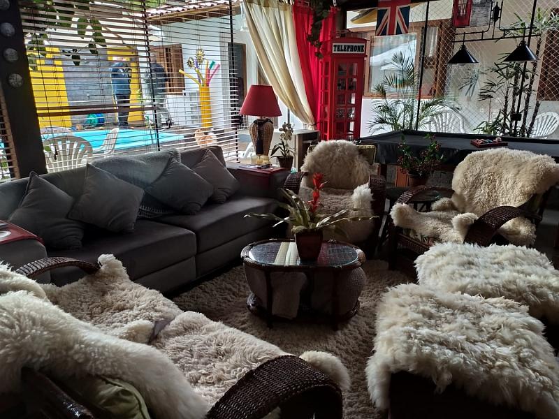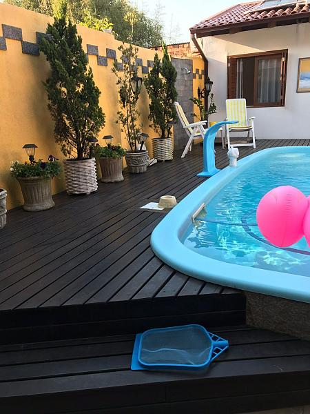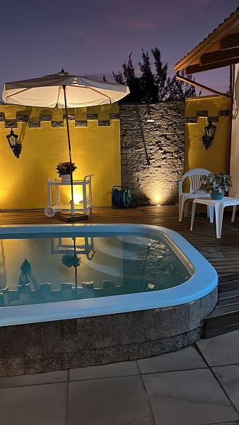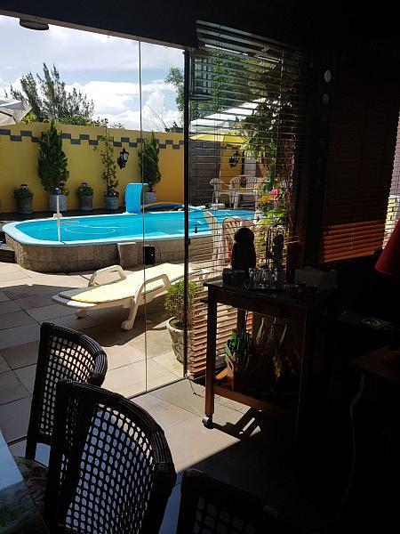 Nos fundos possui uma edícola com um quarto e um banheiro, área de serviço e piscina.