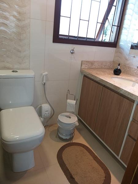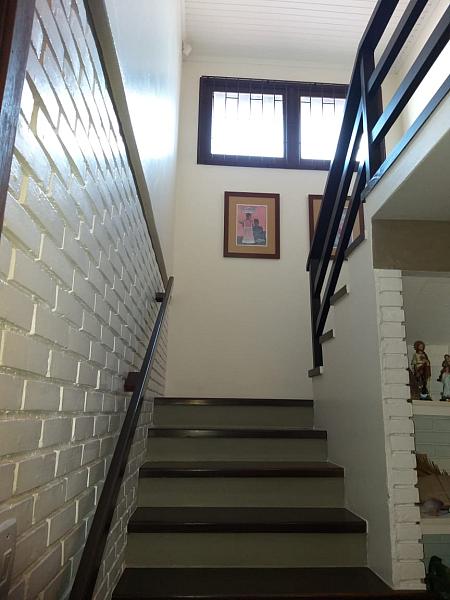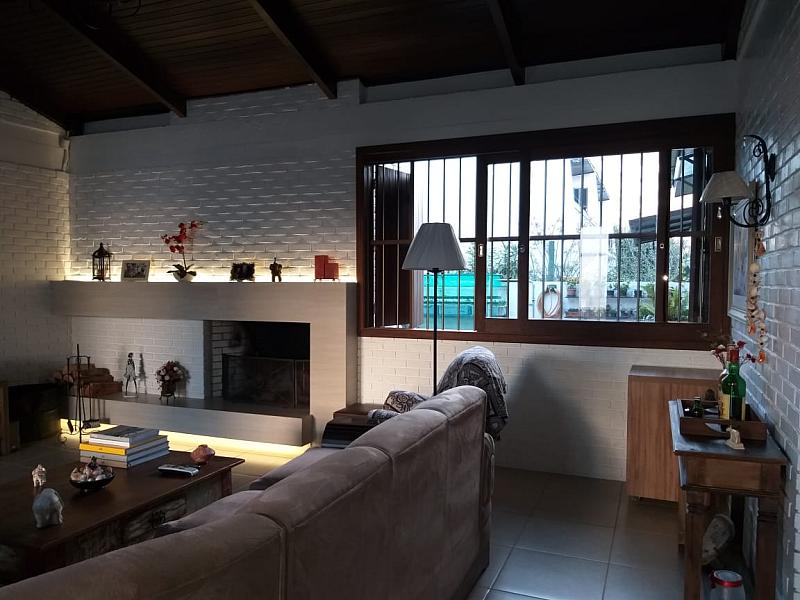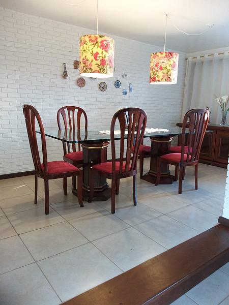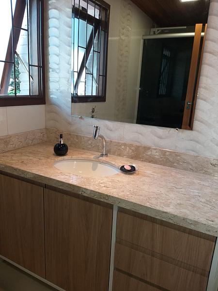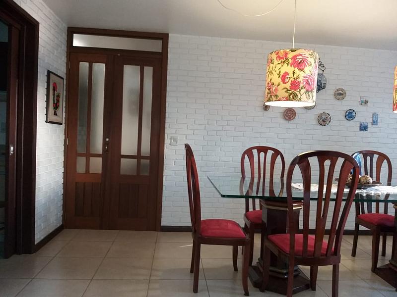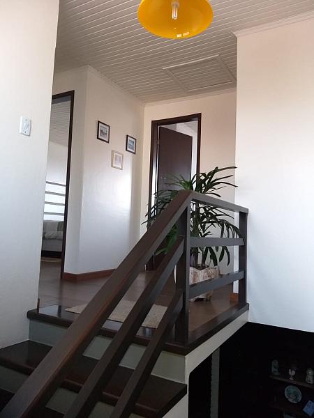 A casa conta com 5 dormitórios, sendo um suíte, 4 banheiros, sala de estar com lareira, jantar e cozinha, área de serviço, varanda, garagem com espaço gourmet e churrasqueira.