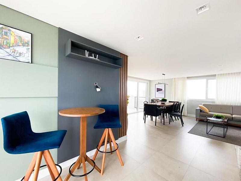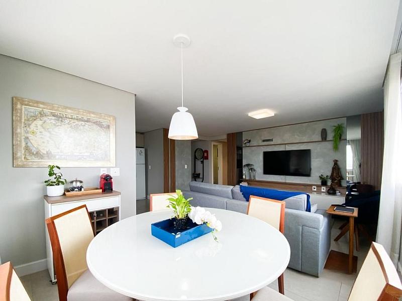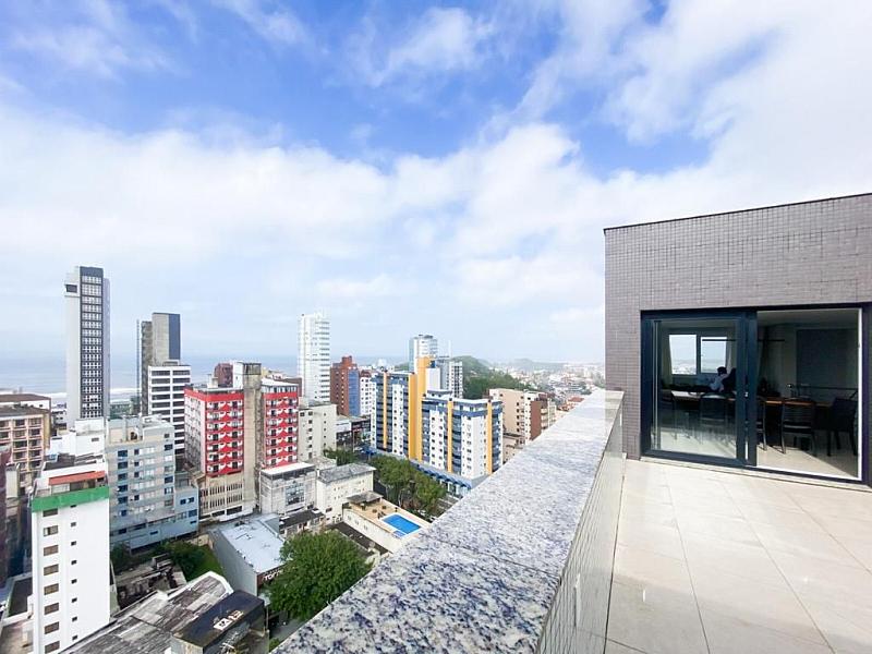 Cobertura Duplex mobiliada e decorado! São 213m² privativos, 3 suítes climatizadas, living, jantar e cozinha integrados, área gourmet com sala de jantar e estar, 2 lavabos, 1 banheiro social, banheiros ventilação natural, churrasqueira, 2 terraços independentes e espera para piscina. Localizado entre o centro e o Mar, o Villaggio del Mare conta com infraestrutura completa, academia, salão de festas, espaço gourmet... Prédio pioneiro no litoral em energia fotovoltaica nas áreas comuns para reduzir o consumo de energia elétrica no local. Possui uma arquitetura arrojada e moderna, pensado para que tivesse a melhor orientação solar em qualquer das suas unidades.