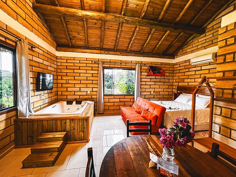 Todos os chalés são privados e completos com cozinha equipada e móveis rústicos, 3 chalés contam com banheira de hidromassagem, e um chalé possui acessibilidade.
