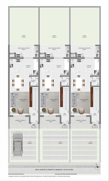 No andar térreo, os ambientes se integram para tornar seus dias mais leves. Uma varanda charmosa na frente, sala de estar e jantar, cozinha planejada para quem gosta de viver bons momentos, área de serviço, lavabo e uma churrasqueira perfeita para reunir família e amigos.