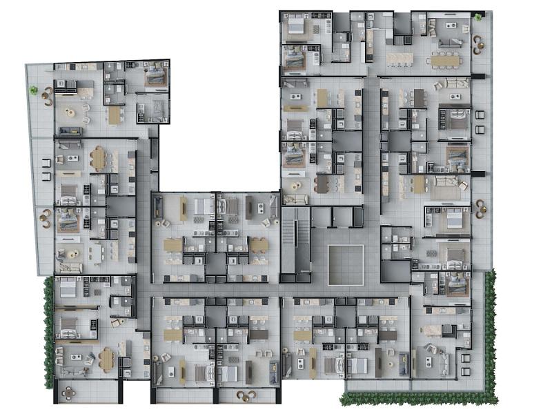As áreas comuns do Nature vão muito além de piscina, espaço gourmet e salão de festas. Ele foi projetado para ter a linguagem da natureza, do conjunto, de modo a forjar uma relação direta entre as áreas internas e externas. Encontre os dois no Nature. A natureza está repleta de diversidade. Aqui também. A variedade das plantas do Nature oferece apartamentos amplos e apartamentos compactos.